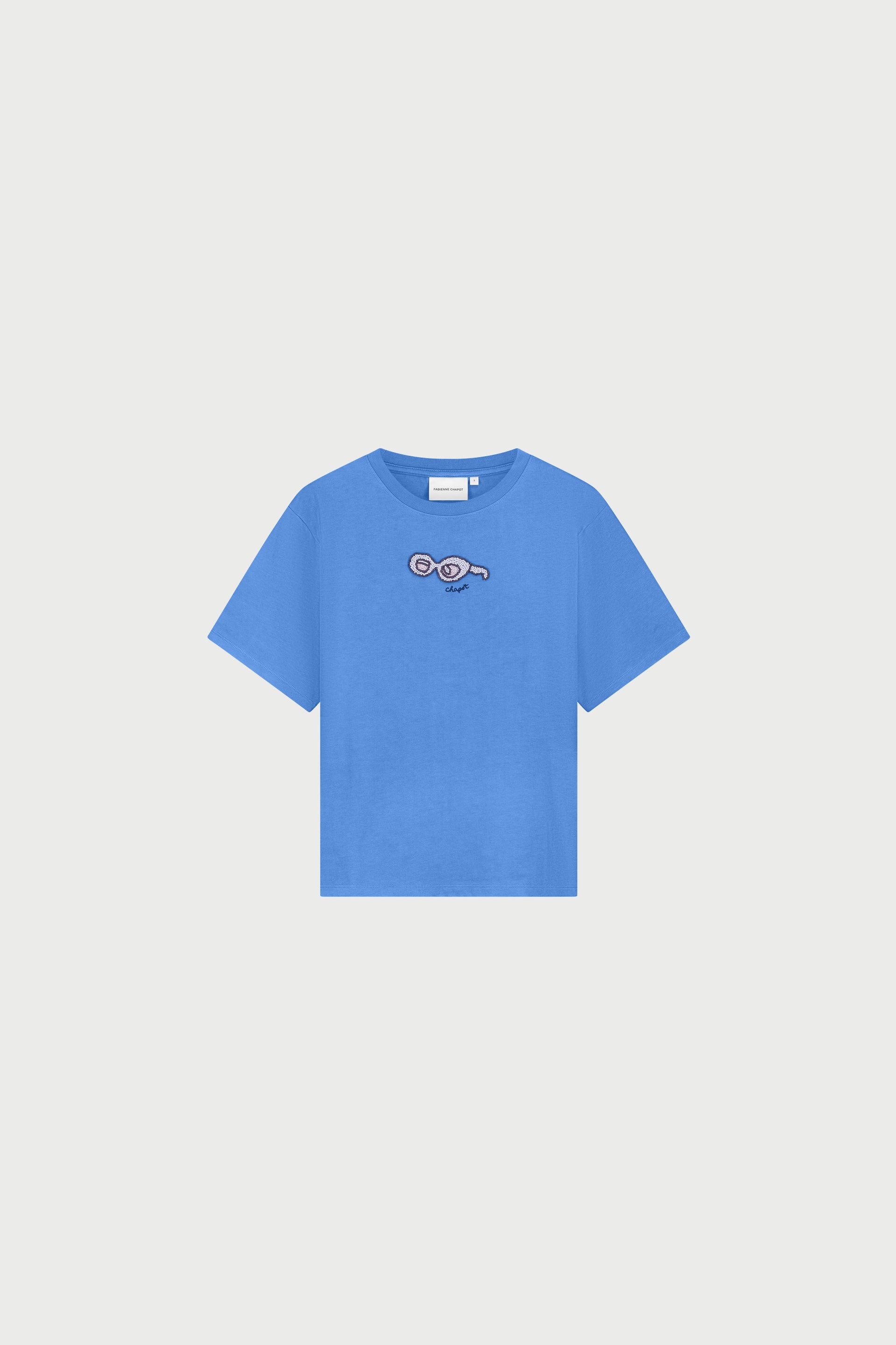 This Marina Blueshort-sleeve t-shirt is crafted from 100% organic cotton for a soft, breathable feel. Featuring a super fun sunglasses beaded design on the front, it offers a comfortable, regular fit. Perfect for adding a playful, artistic touch to casual outfits or everyday wear.
