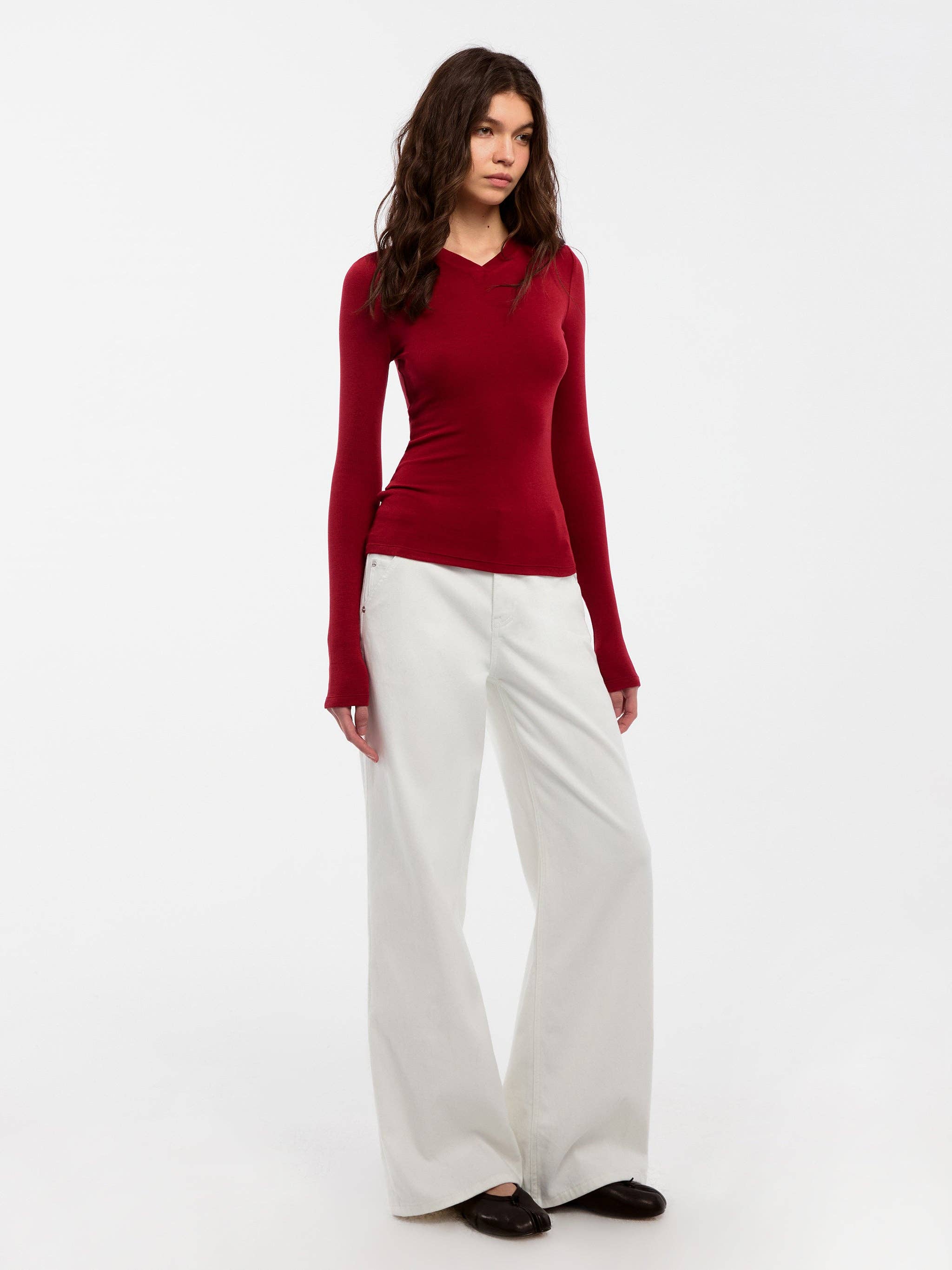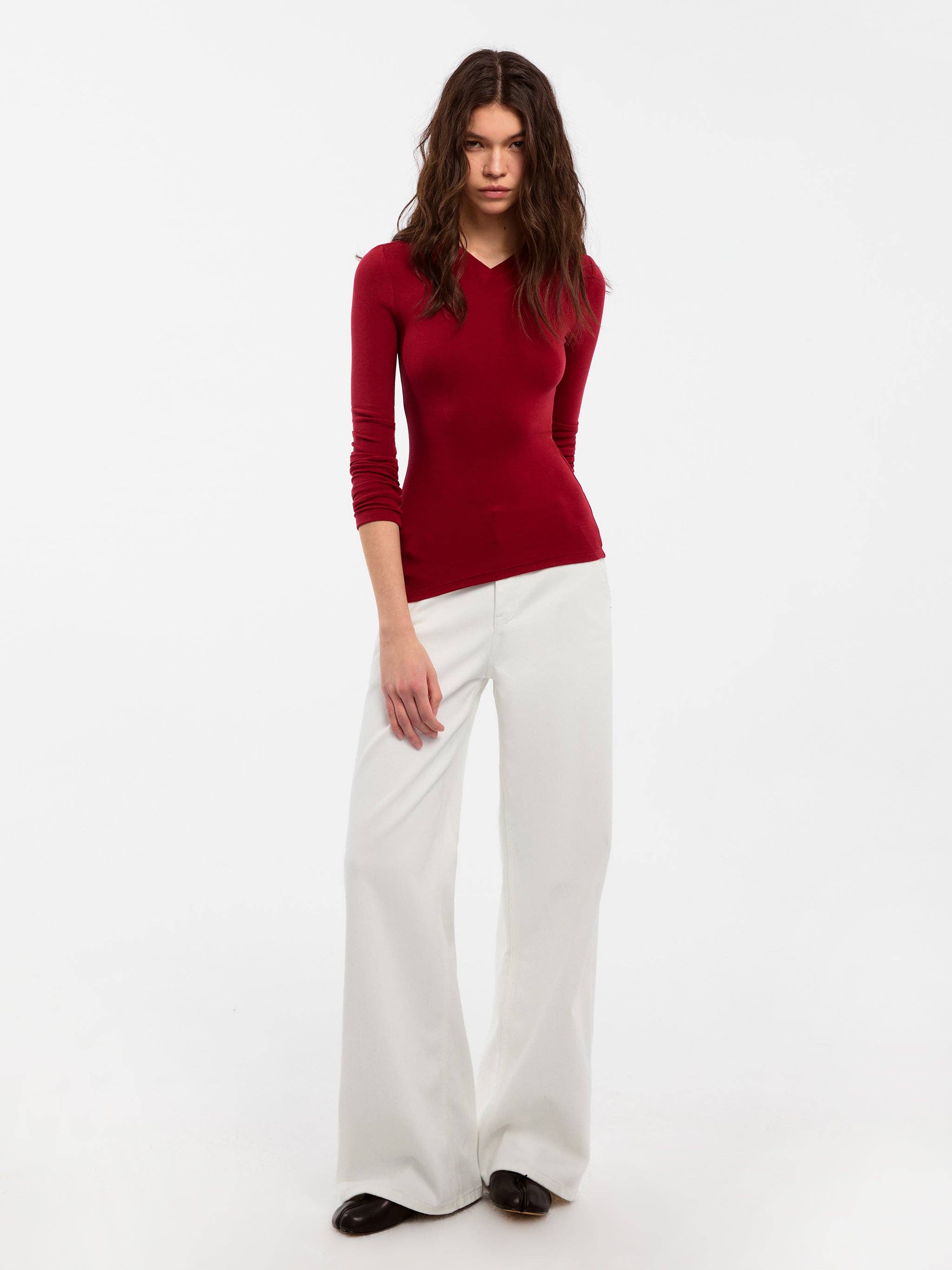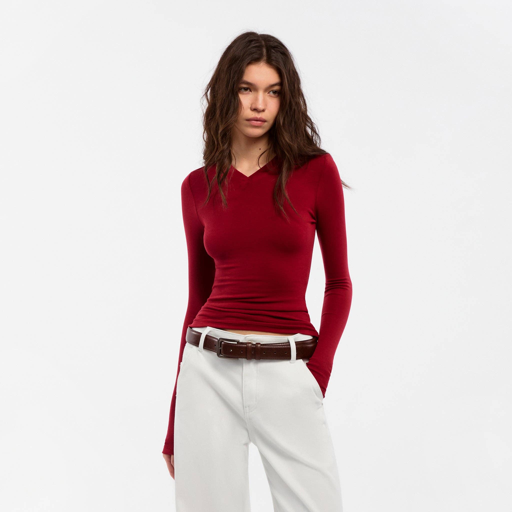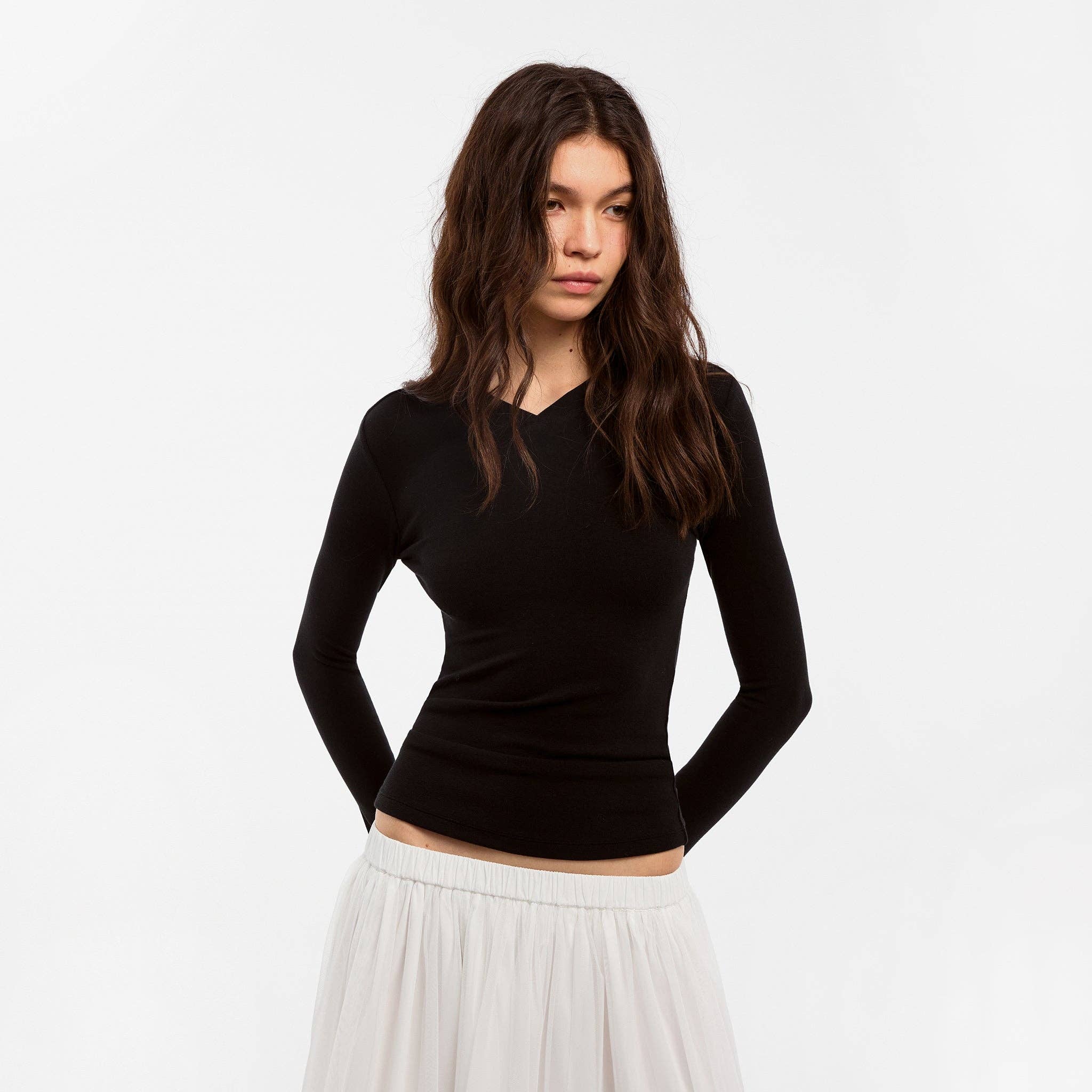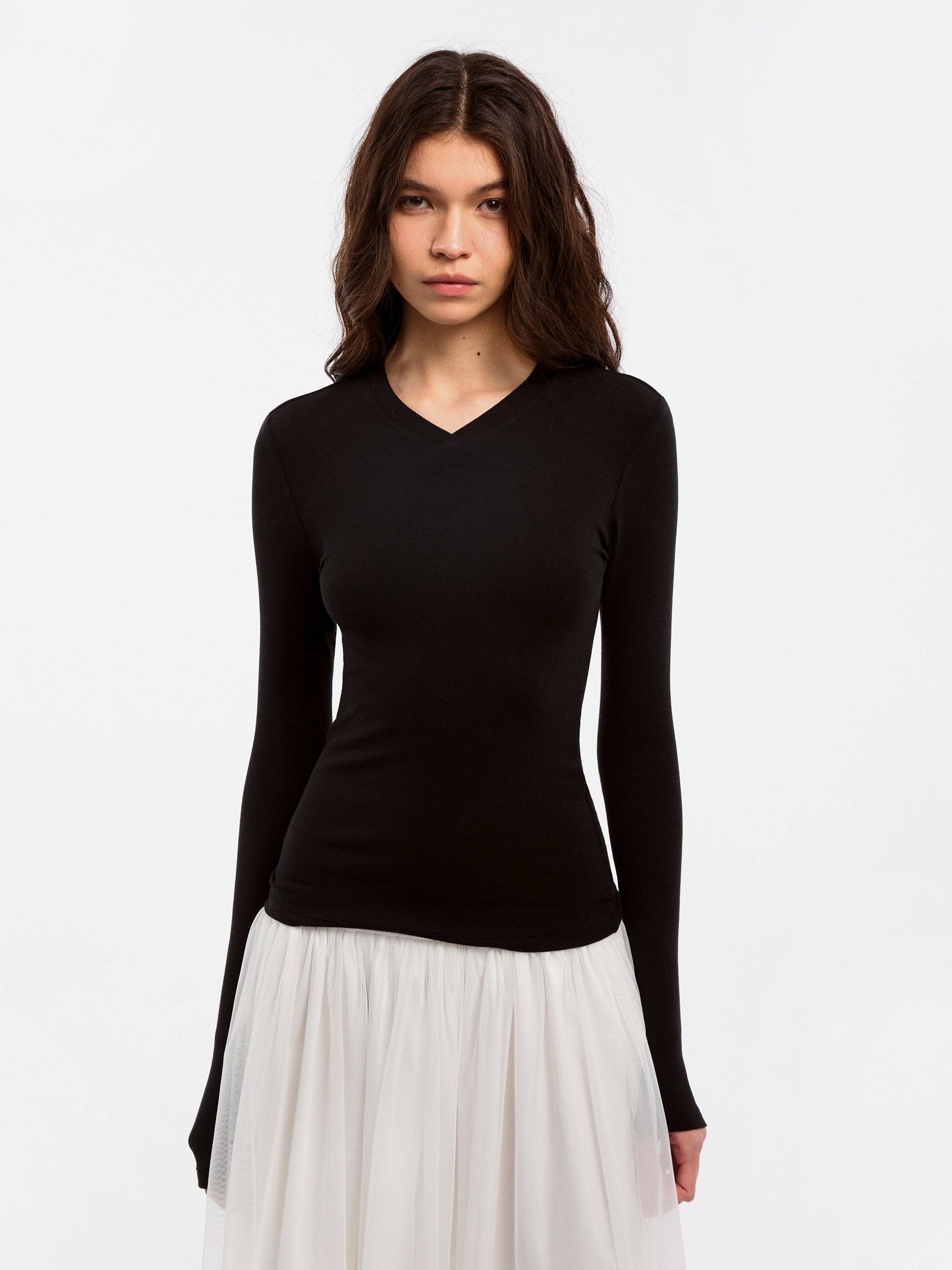 Slim Long-Sleeve Top – Soft V-Neck
