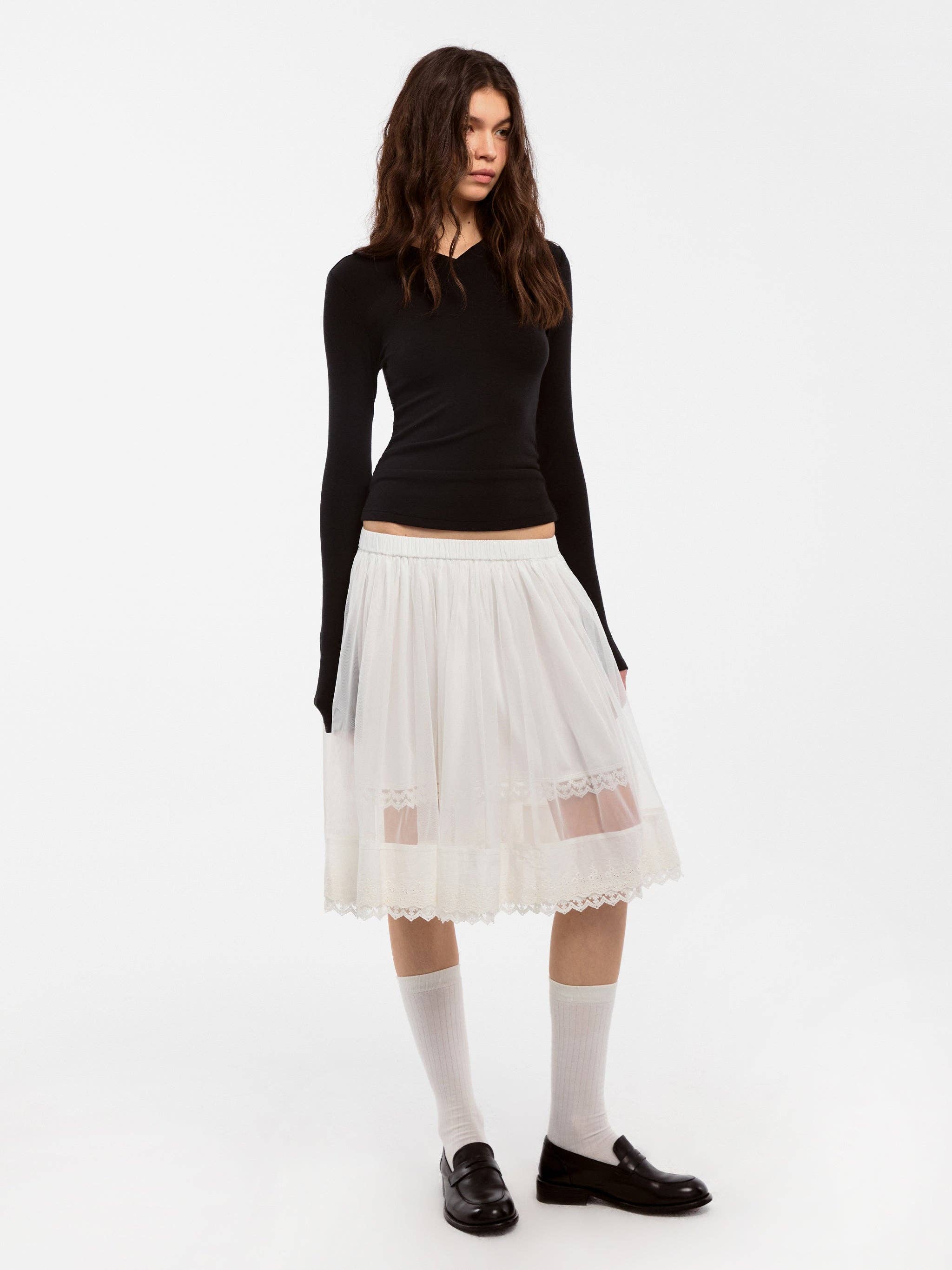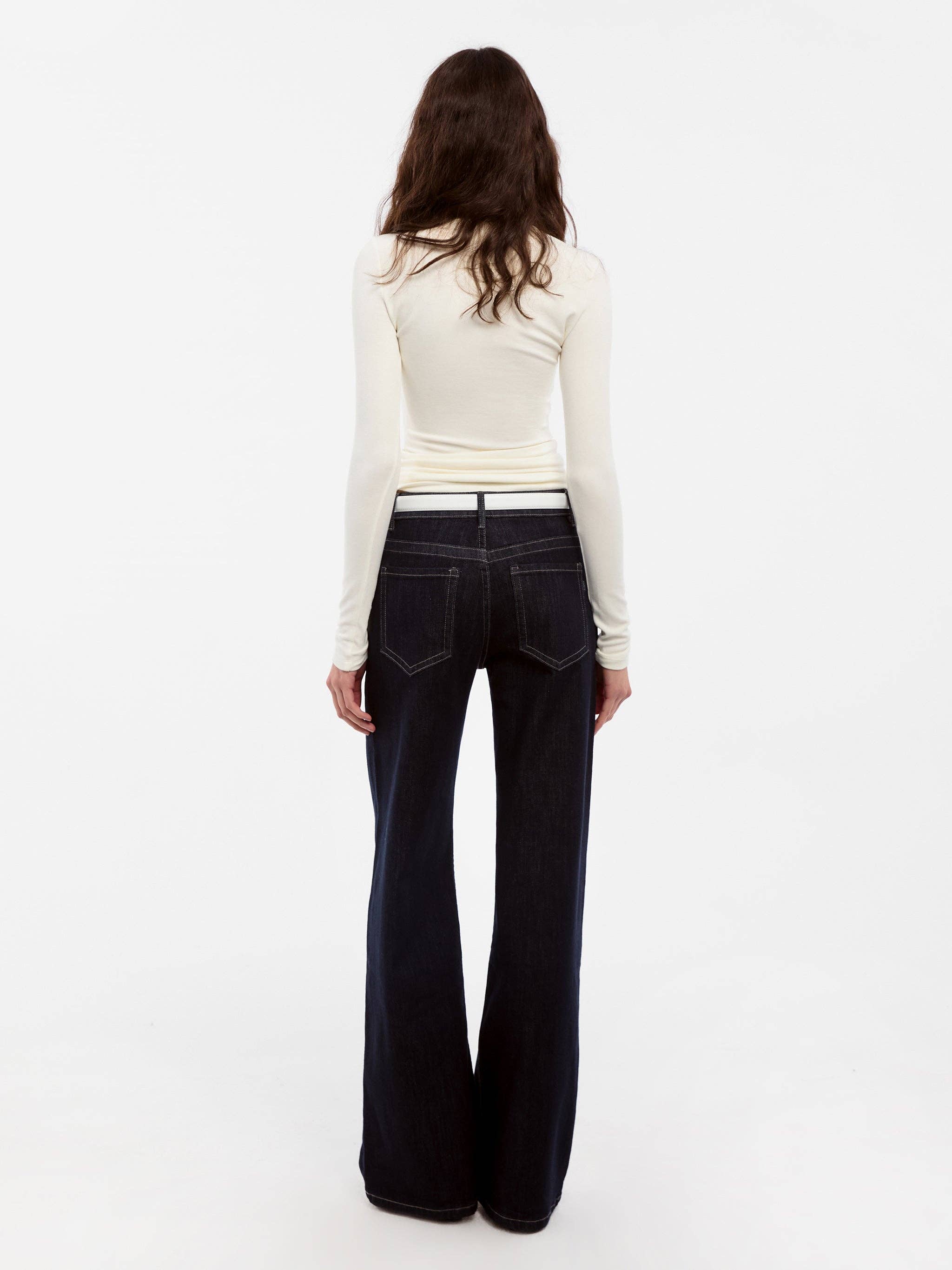 A slim, long-fit top with a subtle V-neck that gently highlights the collarbone. Tailored Shoulders & Extended Sleeves: Smooth shoulder lines and slightly long sleeves provide a flattering, lightweight coverage. Premium Fabric Blend: Soft viscose with a touch of wool offers warmth, stretch, and all-day comfort. Designed as a versatile layering piece, it’s your go-to minimalist top for every season.