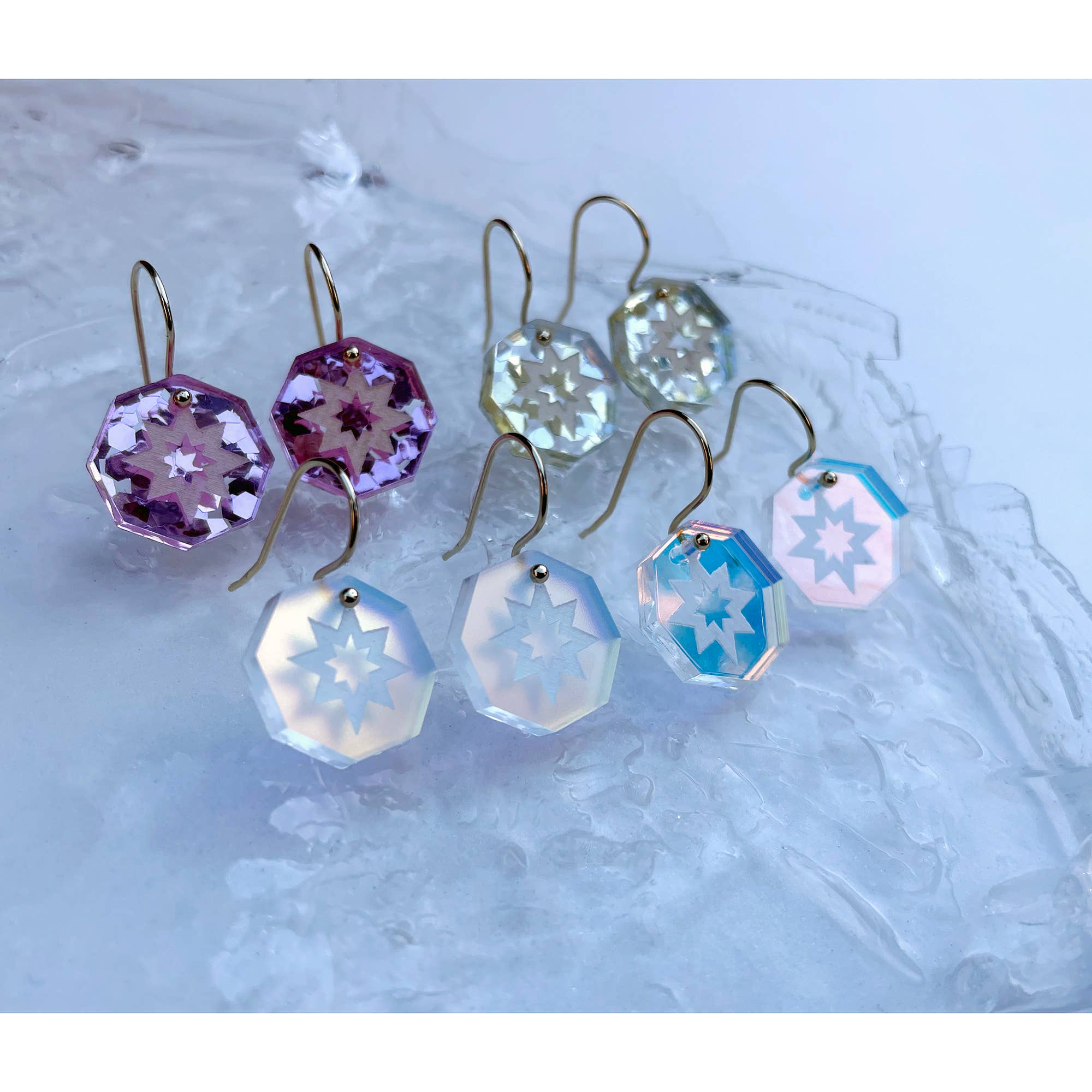 The laser-etched star design is lightly inked on the glitter colours to help the design show up, and the iridescent versions have a glowing, colour-shifting effect.